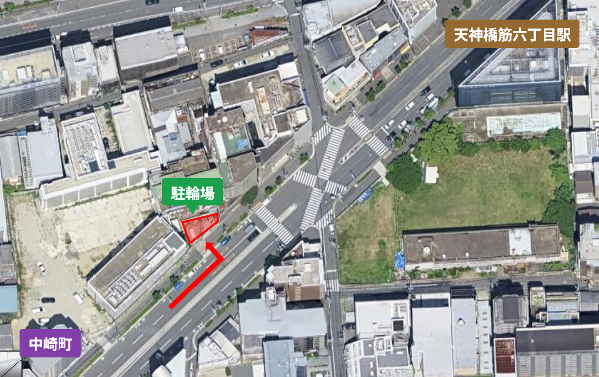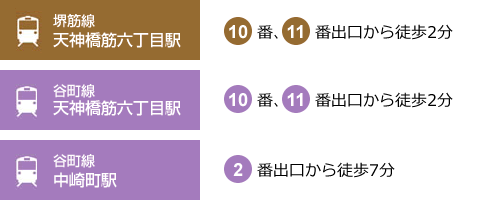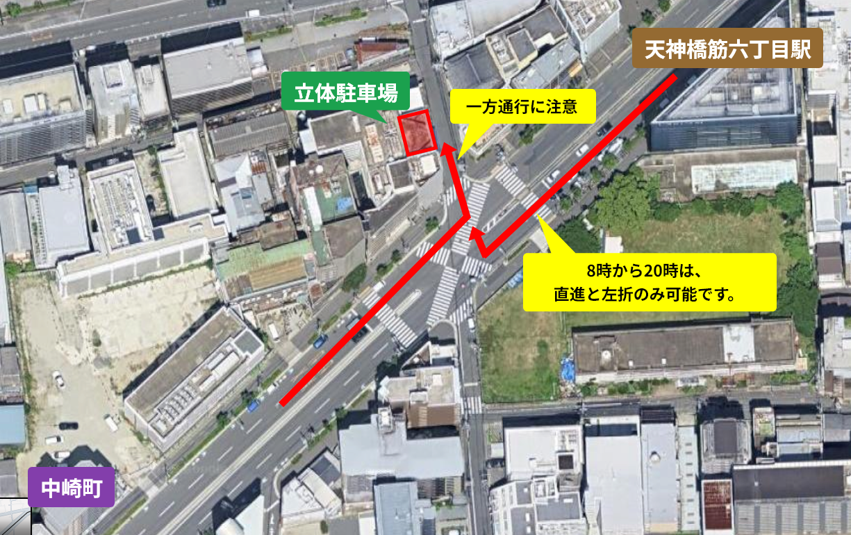 長柄出口を降りてすぐ「樋ノ口町」交差点を左折、約1分「天神橋六」交差点梅田方面 すぐ右側